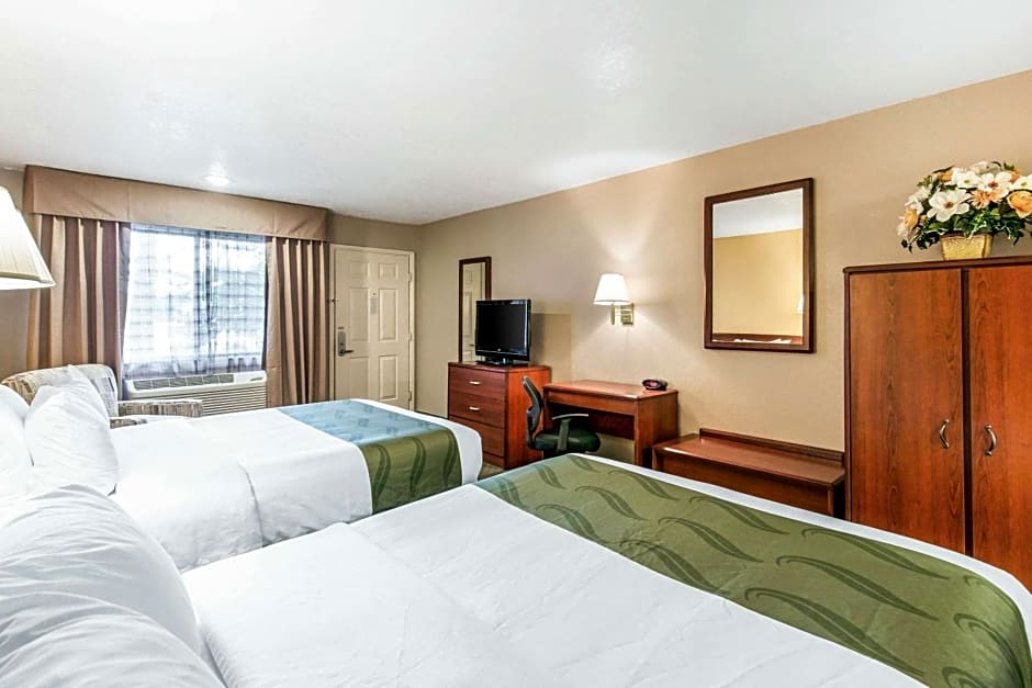 2 Queen Beds, Nonsmoking, Pet friendly is 301 square feet and includes a queen-size bed 150-154 width plus desk, cable tv, hairdryer, tea and coffee making facilities , and ironing set.